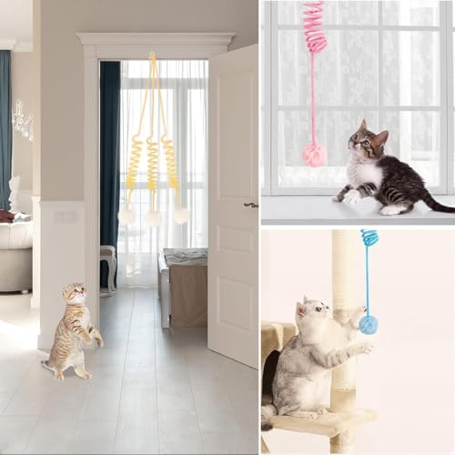 INSTALLATION FACILE : La boucle réglable du cordon élastique peut être ajustée à la hauteur souhaitée. Il suffit d’accrocher le jouet à l’endroit où votre chat doit jouer. Le ressort chat peut être accroché aux portes, fenêtres, sièges et cages afin que votre chat puisse jouer seul. Il vous libère également les mains.