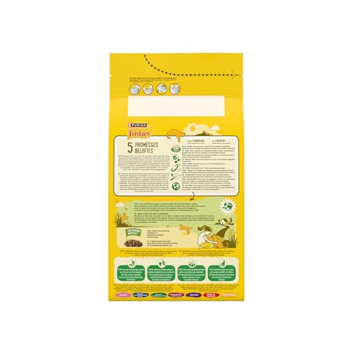 Les 5 Promesses FRISKIES®. Depuis le jour où vous avez accueilli votre chat chez vous, vous avez pris un engagement. La promesse de prendre soin de lui, de bien le nourrir et de l’aider à vivre une vie heureuse et saine pour le plus grand bonheur de votre foyer. Avec plus de 50 ans d’expertise, FRISKIES® nourrit depuis des générations des chats heureux et en bonne santé grâce à une alimentation savoureuse et de qualité. C’est une grande responsabilité. Tout comme vous, chez FRISKIES®, nous tenons nos engagements et 5 promesses nous tiennent à cœur : – Nutrition : une savoureuse recette 100% complète et équilibrée, élaborée avec un mélange de protéines animales et de protéines végétales – Qualité : des centaines de contrôles quotidiens sont effectués tout au long de notre processus de production – Expertise : tous nos produits sont développés par les nutritionnistes Purina – Traçabilité : nos recettes sont préparées avec des ingrédients de haute qualité, rigoureusement sélectionnés provenant de fournisseurs de confiance – Notre engagement 2025 : Nous nous engageons à rendre nos emballages 100% recyclables ou réutilisables d’ici 2025 Toutes les recettes FRISKIES® sont sans colorants, arômes et conservateurs artificiels.