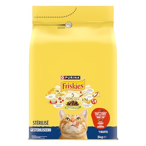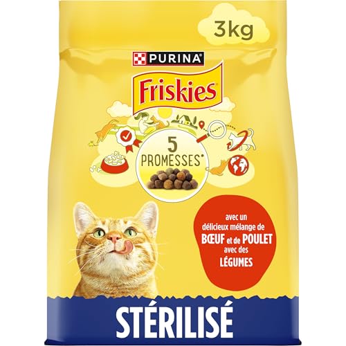 FRISKIES | Chat | Croquettes complètes pour Chats Adultes stérilisés | Au Boeuf, Au Poulet et aux Légumes | Aliment Complet pour Les Chats stérilisés | Sac | 3 KG