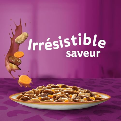 Aliment humide complet pour chats adultes à partir de 1 an – Adapté aussi aux chats stérilisés – Sachets fraîcheur Whiskas Tasty Mix Recettes de Campagne en sauce 4 variétés (à l’Agneau et au Poulet, au Poulet et à la Dinde, au Canard, au Bœuf et à la Volaille). De délicieuses recettes offrant un mélange alléchant d’ingrédients pour ravir les papilles de votre chat à chaque repas, sans compromis sur la nutrition. Dégusté et approuvé par les chats, chaque savoureux plat en sauce aiguise leur appétit et procure une sensation de bien-être qui fera ronronner votre chat de plaisir Préparé avec des ingrédients de haute qualité, une délicate texture et un goût irrésistible pour un plaisir garanti Le poisson utilisé dans nos recettes provient de sources durables. Offrez à votre chat les saveurs qu’il préfère et toutes les bonnes choses dont il a besoin pour varier les plaisirs tout en l’aidant à rester plein de vitalité et heureux. Un repas complet et équilibré qui apporte à votre chat les nutriments essentiels dont il a besoin pour rester plein de vitalité, dont des vitamines B et une teneur équilibrée en minéraux. De la gourmandise pour eux, de la tranquillité d’esprit pour vous. Nourriture pour chat mise au point avec nos nutritionnistes et nos vétérinaires du centre de recherche WALTHAM – Principale référence mondiale pour la nutrition et le bien-être des animaux de compagnie. Pâtée pour chat disponible dans un sachet fraîcheur pratique d’utilisation. Un format idéal pour offrir à votre félin adoré une nourriture toujours fraîchement servie. Plus de gamelles propres et moins de restes