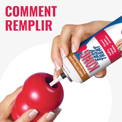 Remplissable : Remplis la balle de friandises, de beurre de cacahuètes ou de snacks KONG pour un défi prolongé ; lavable en haut dans le lave-vaisselle