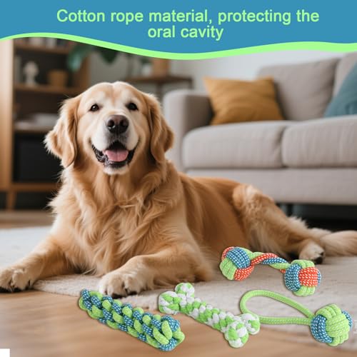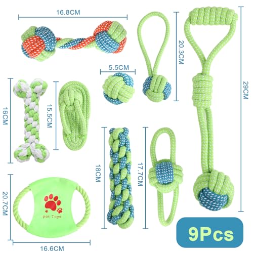 Set de 9 Jouets pour Chiens – Jouets pour Chiots en Coton – Soins Dentaires, Réduit Le Stress, Protège Les Meubles – pour Chiens Petits, Jeu et Entraînement (Vert)