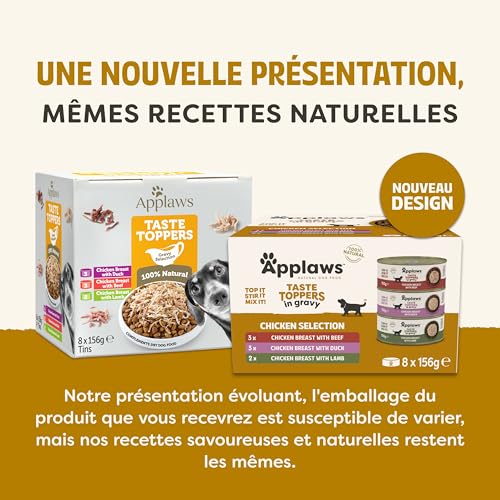 Applaws Nourriture Humide Naturelle pour Chiens – Émincés de Poulet et Viande en Sauce, sans Céréales, 8 x 156g