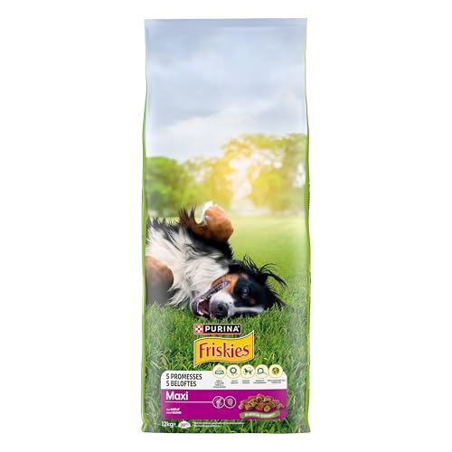 FRISKIES | Maxi | Chien | Croquettes pour Chiens Adultes de Grande Taille | au Boeuf | Source de protéines de Haute qualité | Sac | 12 KG