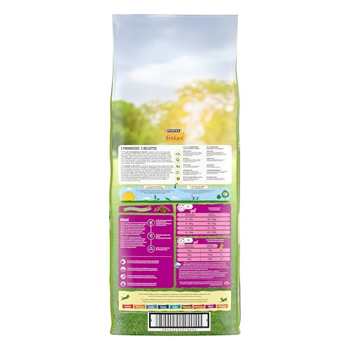 Les 5 Promesses FRISKIES® Depuis le jour où vous avez accueilli votre chien chez vous, vous avez pris un engagement, fait la promesse de prendre soin de lui, de bien le nourrir. Chez FRISKIES®, nous avons fait la même promesse. Depuis plus de 50 ans, FRISKIES® nourrit des générations des de chiens heureux et en bonne santé grâce à une alimentation savoureuse et de qualité. C’est une grande responsabilité. Tout comme vous, chez FRISKIES® nous tenons nos engagements et 5 promesses nous tiennent à cœur : 1) Nutrition : Une savoureuse recette 100% complète et équilibrée, élaborée avec un mélange de protéines animales et végétales, comme les céréales. 2) Qualité : Des centaines de contrôles quotidiens sont effectués tout au long de notre processus de production. 3) Expertise : Tous nos produits sont développés par les nutritionnistes PURINA. 4) Traçabilité : Nos recettes sont préparées avec des ingrédients de haute qualité, rigoureusement sélectionnés provenant de fournisseurs de confiance. 5) Notre engagement 2025 : Nous nous engageons à rendre nos emballages 100% recyclables ou réutilisables d’ici 2025. Toutes les recettes FRISKIES® sont sans colorants, arômes et conservateurs artificiels.