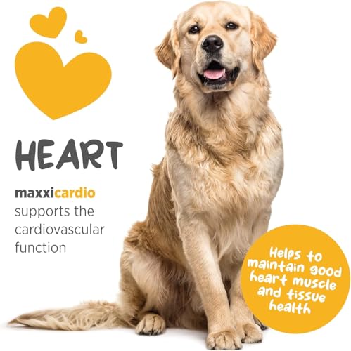 Because your dog’s heart is irreplaceable – maxxicardio contains a carefully selected mix of amino acids, minerals and vitamins that work synergistically to support and maintain good cardiovascular and circulatory health in dogs. Supports cardio function and helps maintain good heart, muscle and tissue health. Promotes normal circulation, healthy blood pressure, supports regular heartbeat and helps balance cholesterol levels. Beneficial daily support for senior dogs suffering from various age-related problems. Vital part of a good heart and cardiovascular health care plan for any dog. Healthier heart means healthier dog with higher energy levels and better performance in every respect. Can help to improve physical and mental performance (stamina and focus) – which makes maxxicardio the ideal supplement for active dogs that endure cardiac stress on a regular basis, as well as for working dogs and dogs that compete in sports like agility, flyball, sledding and canicross. Cardiovascular problems are more common in dogs than most owners realise. A healthy balanced diet and daily exercise (physical and mental) are important in order to keep your dog in good shape and his heart healthy and strong. However, this is not always enough – using maxxicardio as part of your dog’s cardiovascular health care can really make a difference for your dog’s heart as well as his longevity and quality of life. maxxicardio contains carefully chosen ingredients that support and help maintain good canine heart health. Each ingredient has its own important role and together they work synergistically to support and maintain cardiovascular and circulatory health in dogs. Made in the USA in GMP registered, NASC certified and FDA compliant manufacturing facility.