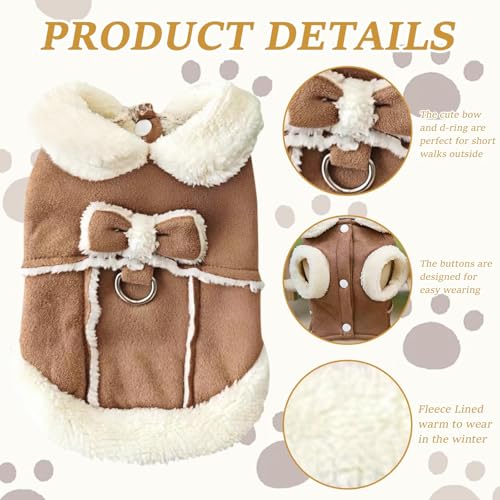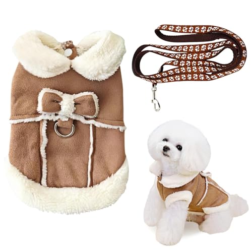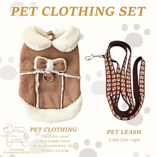 1 Pièce De Vêtements pour Animaux De Compagnie, 1 Pièce De Laisse, Joli Manteau en Coton avec Nœud, Manteau en Peluche pour Chats Et Chiens, Fournitures pour Animaux De Compagnie