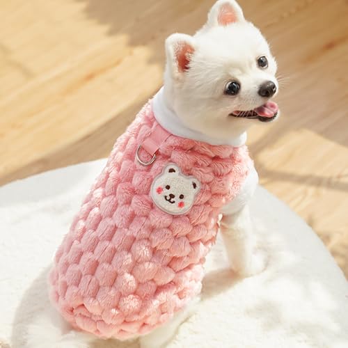 Pull en Polaire Doux pour Petit Chien Chat, Chandail d’hiver Chaud Pelucheux avec Anneau en D, Vêtement pour Petits Chiens, Yorkshire, Chihuahua, Chat, Taille L