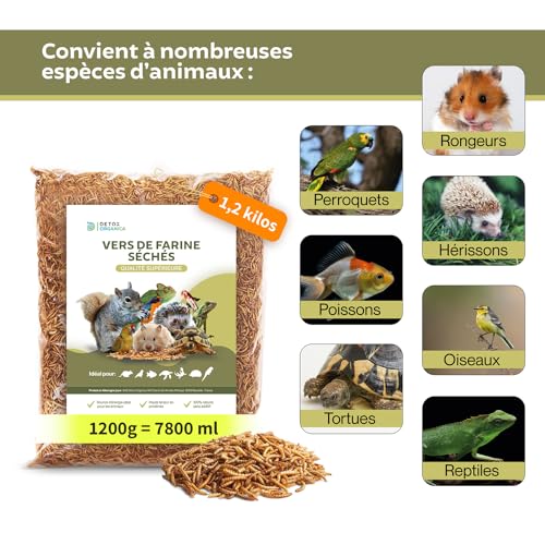 vers de Farine Séchés 1.2 Kilo / 1200 g (= 7800ml) Qualite Premium – Friandise Oiseaux, Hérissons, Tortues, Reptiles, Poissons, Rongeur | Animaux Sauvages, Compagnie | 100% Naturel, sans additifs