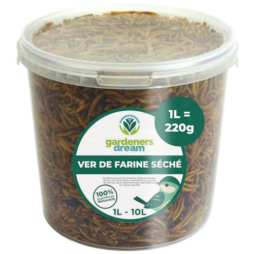 vers de Farine séchés GardenersDream – Friandises nutritives pour Oiseaux Sauvages (1L)