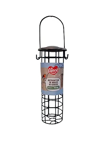 Le support à boule de graisse Aimé est un accessoire indispensable du nourrissage des oiseaux en hiver. 100% en métal enduit, il permet de suspendre les boules de graisse sans filet, qui sont plus respectueuses de l’environnement et des oiseaux. Il dispose d’un couvercle en acier inoxydable indispensable en cas de pluie. Sa dimension optimale permet de contenir jusqu’à 4 boules de graisse. Son anse permet de l’accrocher facilement aux branches des arbres et buissons. A suspendre en hauteur à l’abris des prédateurs.