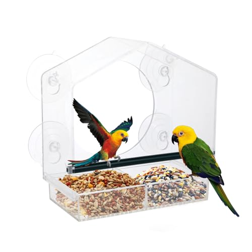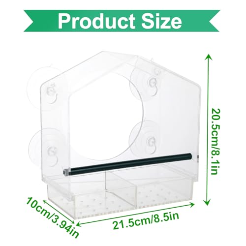Mangeoire Oiseaux Exterieur – Mangeoire Oiseaux Fenêtre – Nichoir Oiseaux Exterieur Transparent avec Ventouses Puissantes et Perchoir – Mangeoire Oiseaux pour Verre de Fenêtre – 21,5×20,5×10 cm