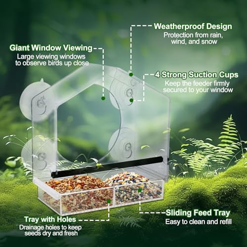 Fixation Ultra-Résistante : Équipée de 4 ventouses ultra-puissantes qui maintiennent solidement la mangeoire contre la fenêtre, permettant à plusieurs oiseaux de se nourrir simultanément en toute stabilité.
