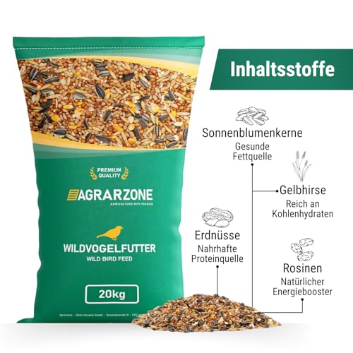 Agrarzone Nourriture pour oiseaux sauvages toute l’année 20 kg – Nourriture pour oiseaux sauvages 20 kg avec un mélange de céréales de haute qualité pour tous les oiseaux – Nourriture grasse avec