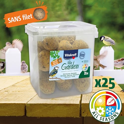 VITAKRAFT – Vita Garden – Seau de Boules de Graisse sans Filets pour Oiseaux du Jardin – Alimentation Complète Pour Oiseaux Toutes Saisons – 25 unités