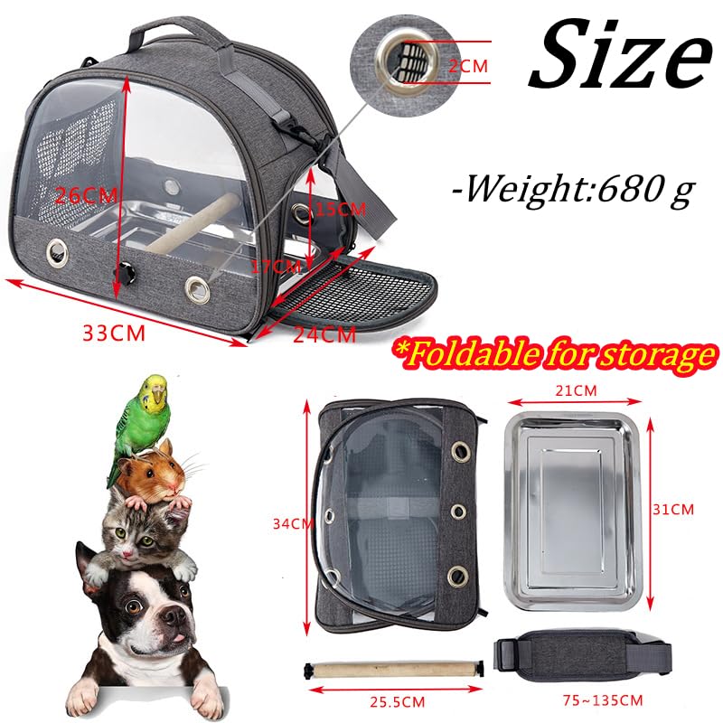 Spécification: Sac à dos pour oiseaux avec tige en bois, sac de transport pour oiseaux avec perchoir et plateau en acier inoxydable, sac à dos léger pour perroquet, avec plateau en acier inoxydable et perchoir, pour