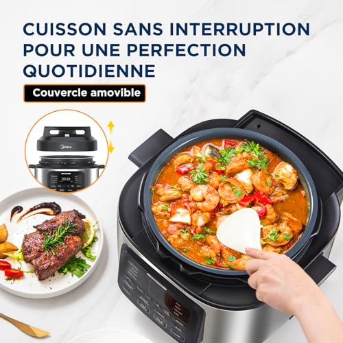 Midea Autocuiseur 9-en-1, Multicuiseur 6L avec 12 Fonctions, Cuiseur de Riz, Vapeur, Yaourtière, Mijoteuse, Sous-Vide, Sauté, 70% plus rapide, Acier Inoxydable