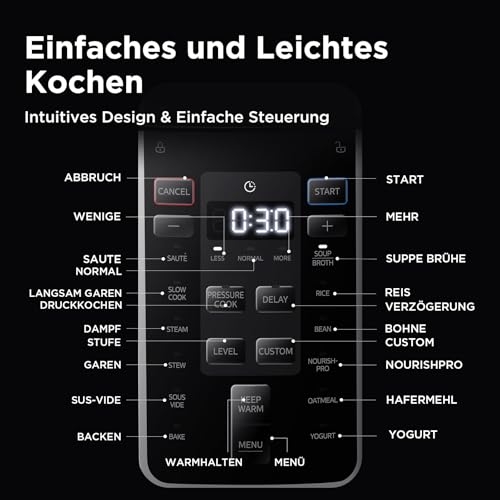 12 PROGRAMMES PRÉDÉFINIS POUR TOUS VOS BESOINS CULINAIRES : Avec ses 12 réglages programmables, préparez facilement une variété de plats gourmands comme la viande, les bouillons, les haricots, le porridge et bien d’autres encore en quelques étapes.