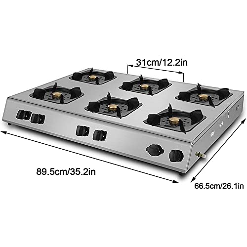 CAJOLI Brûleurs commerciales de Haute Puissance, 3/4/6/8 Burners, poêles au gaz Naturel, poêles de Banc en Acier Inoxydable, Cuisines commerciales, hôtels, Restaurants, etc.,6