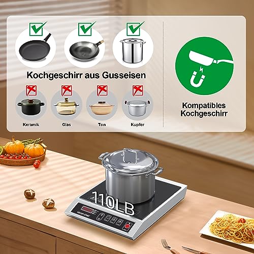 ✔️ COMPATIBLE AVEC LES BATTERIES DE CUISINE MAGNÉTIQUES : Plaque de cuisson à induction commerciale simple compatible avec les poêles en fer, en fonte ou en acier inoxydable avec base magnétique. Le diamètre inférieur doit être de 4,73″ à 13,78″ et le fond est plat. (REMARQUE : vous ne pouvez pas utiliser d’ustensiles de cuisine en céramique, en verre ou autres)