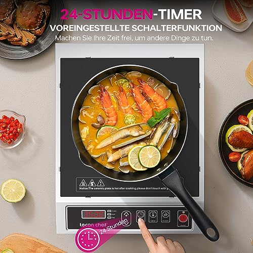 Plaque à induction, Portable 1 Feu Puissante 3500 W, Plaque de cuisine electrique Réglable sur 10 niveaux, grande capacité de charge de 50 KG, 24 heures minute
