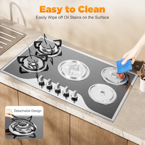 Cuisson efficace : la plaque de cuisson spacieuse (30,5 x 20,1 x 2,6 pouces) dispose de cinq brûleurs indépendants qui permettent à plusieurs personnes de cuisiner différents plats en même temps. La plaque de cuisson à gaz améliore considérablement l’efficacité de cuisson, particulièrement adaptée aux familles nombreuses.