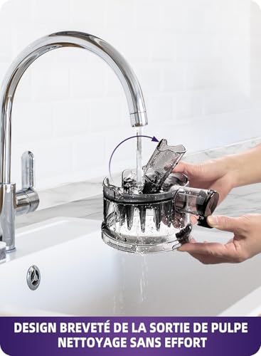 【Sans BPA & Jus Sain】 Fabriqué sans BPA, cet extracteur de jus vous garantit un jus pur, sans pulpe résiduelle ni substances nocives. Redécouvrez le goût authentique de vos fruits et légumes préférés, idéal pour les petits-déjeuners vitaminés ou les pauses bien-être de la journée.