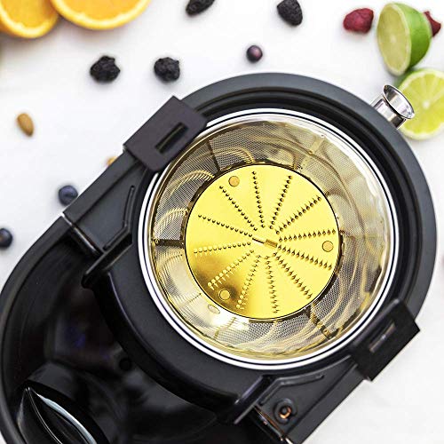Disque avec revêtement titane qui améliore la dureté et maintient les lames affilées plus longtemps. Canal d’entrée XXL de 75 mm pour introduire des fruits et légumes entiers.