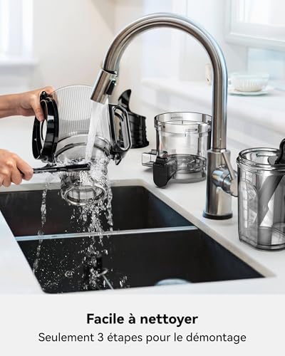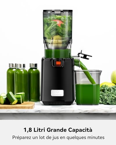Mains Libres : Centrifugeuse extracteur de jus lent avec la chambre de 1,8 L, vous pouvez charger toute votre recette et partir, vous pouvez désormais effectuer plusieurs tâches en cuisine. Préparez un jus ou un lot de jus en quelques minutes