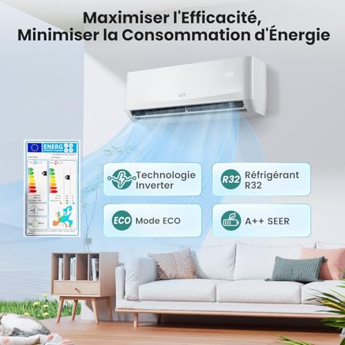 【Refroidissement et Chauffage Énergétiquement Efficaces】Ce climatiseur mini split 12000 BTU (3,4 kW) offre un refroidissement et un chauffage puissants pour des pièces jusqu’à 70㎡, maintenant votre espace confortable toute l’année. Il est équipé d’une technologie inverter et d’une classification SEER A++, garantissant des performances optimales tout en réduisant la consommation d’énergie.