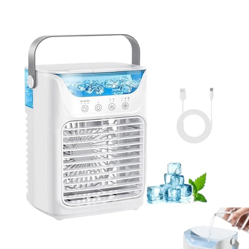 USB Powered & Widely Application: Ventilateur portable de gel aqua rechargeable avec port de charge USB, le conditionneur de ventilateur de brouillard mini peut être alimenté par des banques d’alimentation, des ordinateurs portables, des chargeurs de voiture et des adaptateurs. Convient pour la chambre à coucher, le salon, la salle d’étude, la cuisine, les bureaux, les RV, les cabines, les pique-niques en plein air, les tentes et le camping
