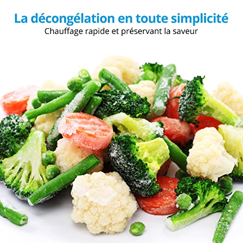Facile à nettoyer grâce à l’inox – parfait pour les plats faits maison, bio, vegan ou les adeptes du micro onde sans plateau tournant.