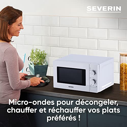 SEVERIN Four à micro-ondes 20 L, 700 W pour décongeler, chauffer et réchauffer, avec 5 niveaux de puissance, Minuteur 35 min, Plateau tournant (Ø 25,4 cm), blanc, MW 7770