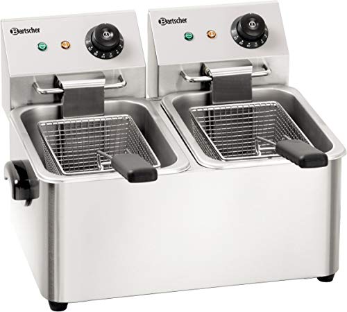 Friteuse professionnelle Bartscher 2 cuves Friteuse électrique professionnelle à 2 cuves – 4 litres – Acier inoxydableUne friteuse électrique robuste et polyvalente pour un service rapideCette friteuse électrique à 2 cuves est conçue pour répondre aux besoins des professionnels de la restauration. Avec une capacité de 4 litres par cuve, elle permet de cuire une grande quantité d’aliments tout en garantissant une cuisson uniforme. Idéale pour les restaurants, snacks et fast-foods, elle est équipée de toutes les fonctionnalités nécessaires pour une utilisation intensive et un entretien facile.Caractéristiques techniques :Tension : 230 VFréquence : 50 HzPuissance : 4 kWMode de fonctionnement : ÉlectriqueNombre de cuves : 2Contenance de chaque cuve : 4 litresNombre de paniers : 2Dimensions des paniers : L 135 mm x P 205 mm x H 123 mmContenance du panier : 2,4 litresPlage de température : De 50°C à 190°C (réglable via manette)Matériau : Acier inoxydable, robuste et facile à nettoyerThermostat de sécurité : Oui, pour garantir une utilisation en toute sécuritéCouleur : ArgentéType : Appareil de tableRaccord d’appareil : Prêt à être branchéDimensions de l’appareil : L 445 mm x P 525 mm x H 310 mmPoids : 9,6 kgAccessoires inclus : 2 paniers et 2 couverclesBac collecteur de graisse : NonRobinet de vidange de la graisse : NonPropriétés : Coins arrondis pour un design moderne et une sécurité accrue.