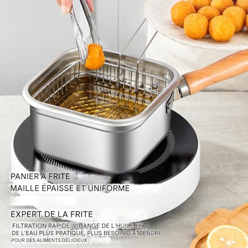 Friteuse Avec,Friteuse Multifonction Grande Capacité – En Acier Inoxydable Anti-Éclaboussures pour Poulet et Frites