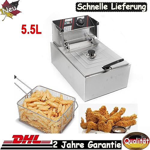 Friteuse électrique 2500 W 5,5 L professionnelle en acier inoxydable avec thermostat 60 – 200 °C avec couvercle et friteuse réglable Fryer Deep Fry Friteuse Fry Friteuse Fry Friteuse Fry F