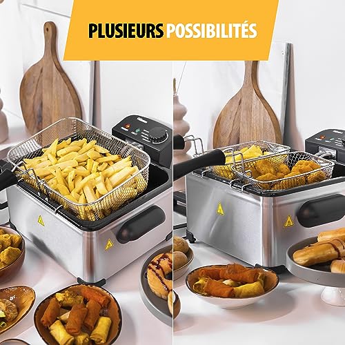 Exploitez la puissance d’un moteur de 2000 W combinée à une capacité généreuse de 5 litres, offrant un espace suffisant pour frire de grandes quantités de vos aliments préférés en toute simplicité. Que ce soit des frites croustillantes, des tenders de poulet dorés ou des rondelles d’oignon délectables, cette friteuse garantit des résultats cohérents, de qualité restaurant, à chaque fois.