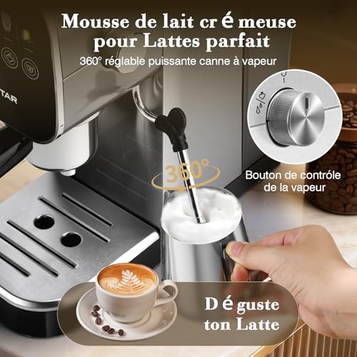 【Presión de 20 Bares para una Crema Inigualable】Gracias a su presión de 20 bares, extrae sabores intensos y una crema densa y cremosa – como la de los mejores cafés. Los amantes del espresso podrán disfrutar de shots profesionales en casa, con ese toque auténtico que hace toda la diferencia.