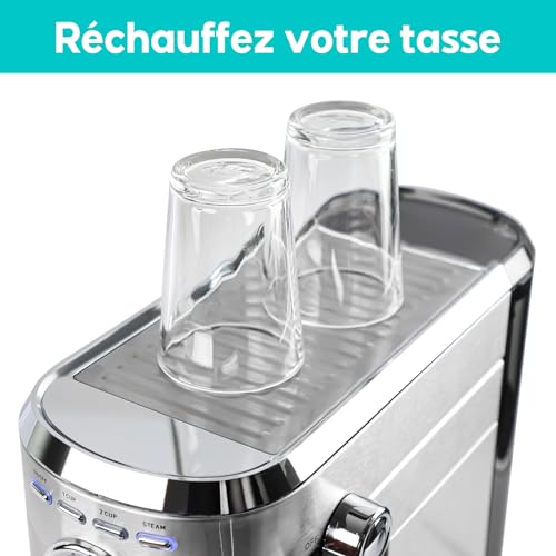 COMMENCEZ LA JOURNÉE AVEC DU CAFÉ : Notre machine à café est équipée d’une pompe italienne professionnelle de 20 bars, d’une puissante chaudière de 1350 W et d’un manomètre pratique. Cette cafetière expresso vous offre le latte, le cappuccino ou le macchiato les plus délicieux