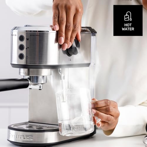 Taurus – Machine à Espresso Euforia Compact 1350W | 20 Bars de Pression | Système Thermoblock | Filtre Supreme Cream | Buse Vapeur Orientable | Double Café Simultané | Cuillère Doseuse