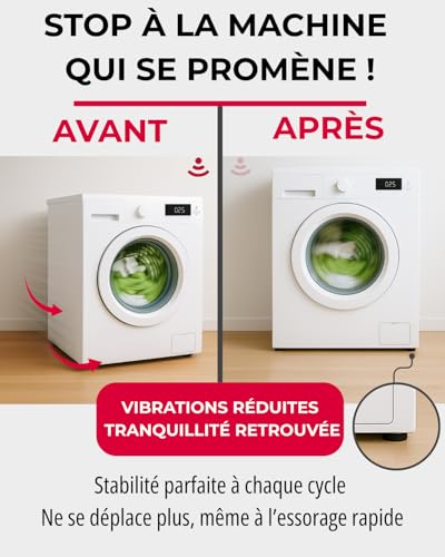 【 FACILE À METTRE EN PLACE 】: Soulevez simplement votre machine à laver et faites glisser nos supports en caoutchouc sous le pied de votre appareil. Possédant une surface anti-dérapante, vous n’aurez plus à vous soucier des vibrations qui peuvent déplacer votre appareil et endommager votre sol. Nos patins peuvent également être utilisés sous votre lit, votre canapé ou même votre réfrigérateur
