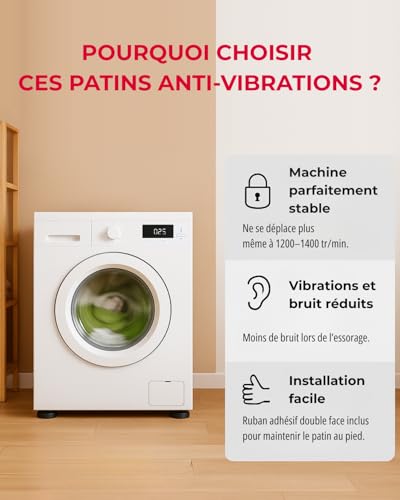4 Patins Support Anti Vibrations Pour Machine à Laver – Antidérapant Compatible Avec Tous les Appareils – Cale Amortisseur En Caoutchouc Pour Lave Linge – Patins Tapis Anti Vibrations ROXPID