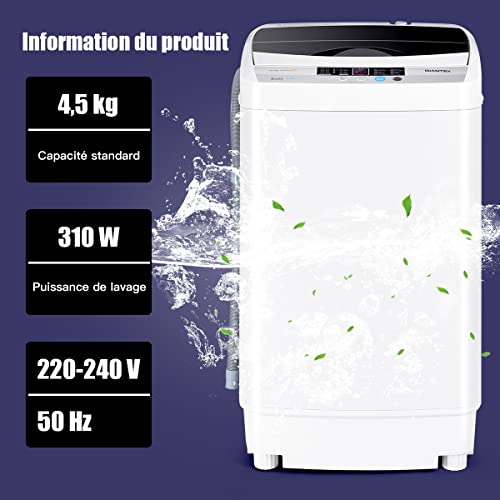 GOPLUS Lave-linges Machine à Laver 4,5 KG 10 Programmes, Écran d’ Affichage LED, Séchage, 50 x 50 x 85 CM, Blanc
