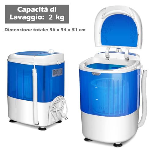 RELAX4LIFE Mini Machine à Laver Semi-automatique avec Minuteur, Mini Lave-linge Compact avec Capacité de Lavage 2 KG, 36X34X51CM, Bleu