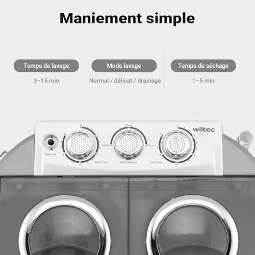 [Mini machine à laver] – La mini machine à laver de Wiltec, avec ses capacités de lavage et de séchage, est idéale pour voyages en camping, camping-cars et petits appartements. Elle offre une solution pratique et efficace pour laver et sécher vos vêtements