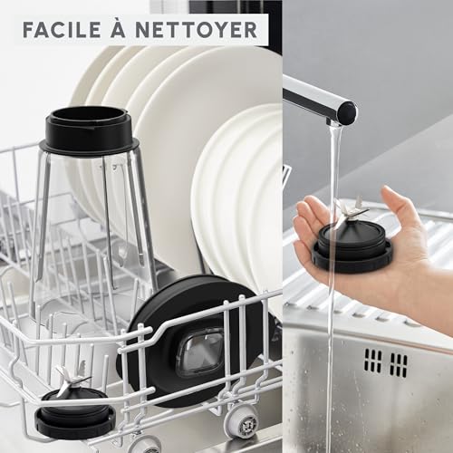FACILE À NETTOYER: les lames en acier inoxydable faciles à retirer et le bol en verre compatible lave-vaisselle du blender promettent un nettoyage en profondeur facile