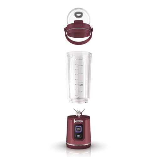 Ninja Blast Blender portable, 530 ml, couvercle résistant aux fuites et bec verseur, mini mixeur sans fil puissant, rechargeable, mixe smoothies, shakes et glaçons, Canneberge, BC151EUCR