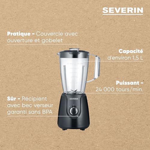SEVERIN Blender avec Récipient Amovible, 1,5 L, env. 600 W, SM 3707, Noir