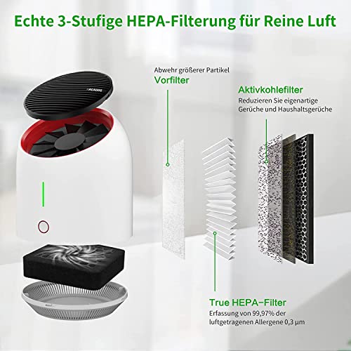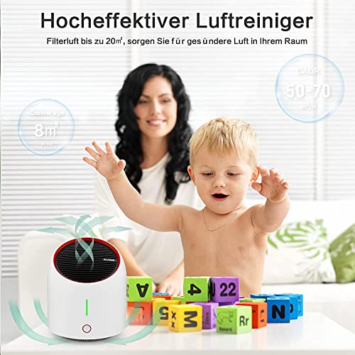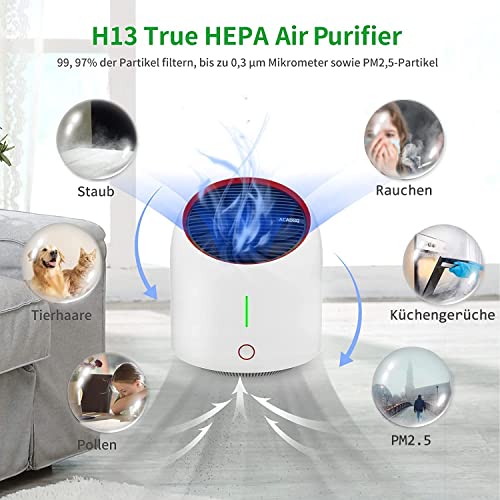 Purificateur d’Air Portable avec Filtre HEPA à Charbon Actif,Purificateur d’Air Maison Elimine 99,97% de Fumée Allergènes Poussière Ultra Silencieux Air Purifier avec 3 Vitesses pour Maison Bureau