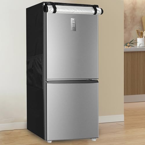 Fridge Cover, Stand Up Fridge Dust,22.83×22.83in Protector Storage Organizer, Zipper Design Set, Waterproof Heavy Duty Black for Appliance, Home, Dorm